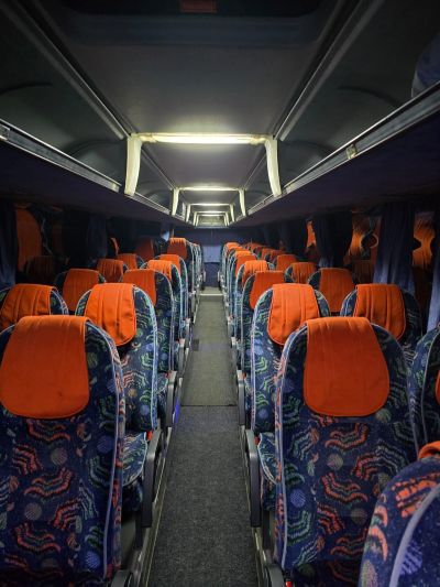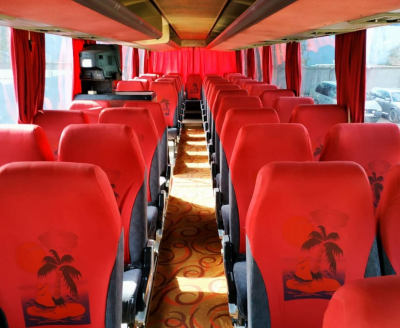 - В каждом автобусе имеются удобные кресла с откидывающимися спинками, кондиционер, аудио-видео система, тахограф.